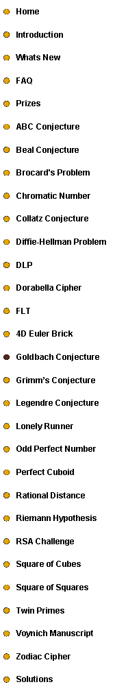 For further information, please see: [1] http://mathworld.wolfram.com/GoldbachConjecture.html [2] http://en.wikipedia.org/wiki/Goldbach's_conjecture [3] http://primes.utm.edu/glossary/page.php?sort=GoldbachConjecture